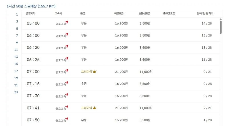 2. 출발지에 '유성' 또는 '유성복합터미널' 입력
