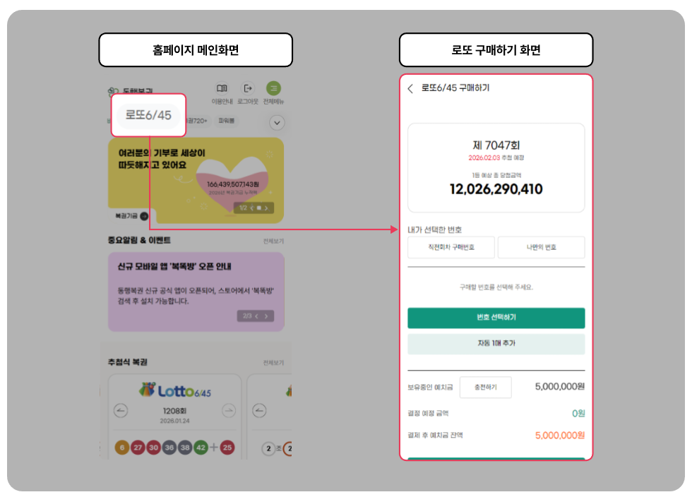 - Step 3: 로또6/45 구매 (회차당 1인 5,000원 제한)
