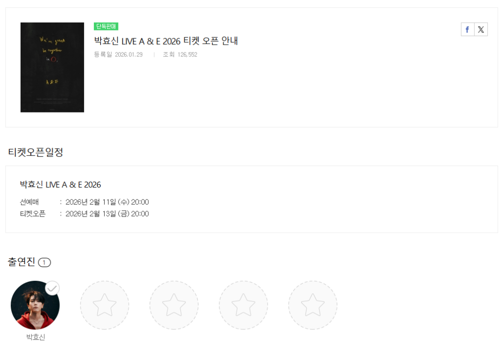 | 공연명 | 박효신 LIVE A & E 2026 |