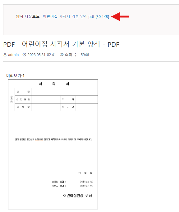 어린이집 사직서 기본 양식 다운로드 및 작성 예시