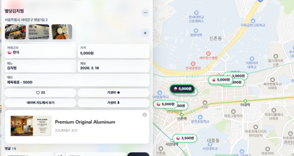 숨겨진 저렴한 식당을 발견한 사용자는 식당 상호명·위치·메뉴 가격·외관 사진을 첨부해 플랫폼에 제보할 수 있습니다. 단, 제보 데이터는 곧바로 노출되지 않고 운영자의 검수 과정을 거칩니다. 최신 로드뷰·포털 리뷰 대조·가격 인상 여부 확인 등을 통해 취지에 부합하는지 판별한 후 최종 반영됩니다.