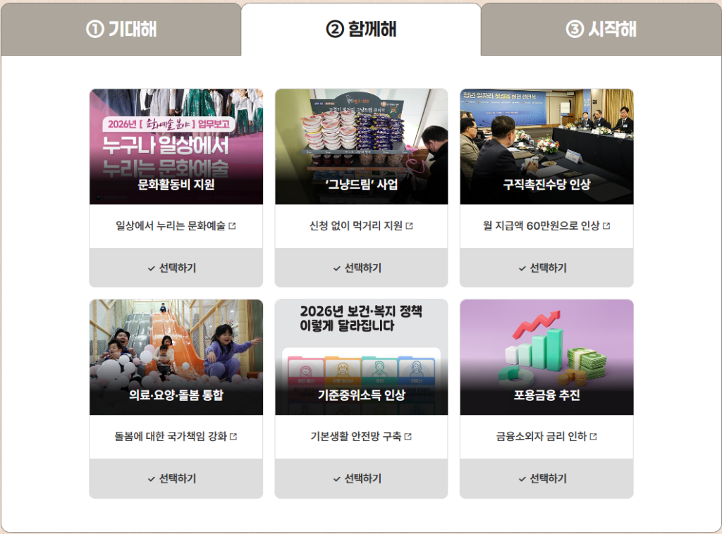 2026년 신설 또는 확대되는 정책 중 여러분에게 힘이 되는 정책을 선택하세요.