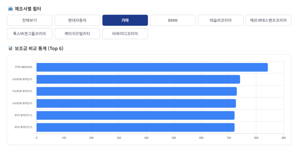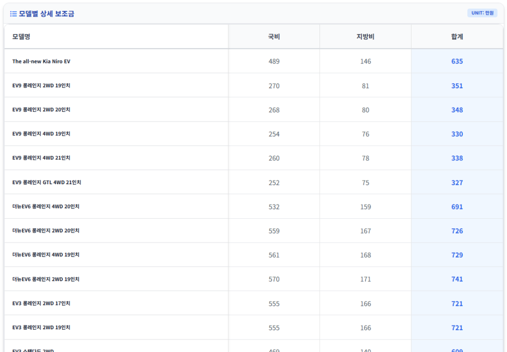 🚗 기아 라인업 보조금 비교 (국비 기준)
