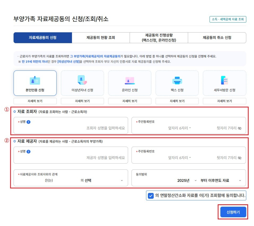 2025 연말정산 부양가족 자료제공 신청 어떻게 할까?